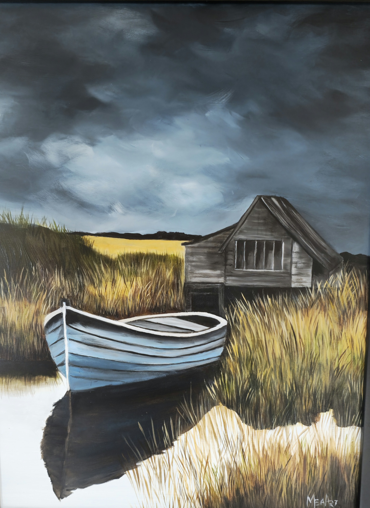 Oils on premium artist board set in a black float frame